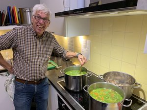 Chef Peter legt de laatste hand aan de doperwtensoep.